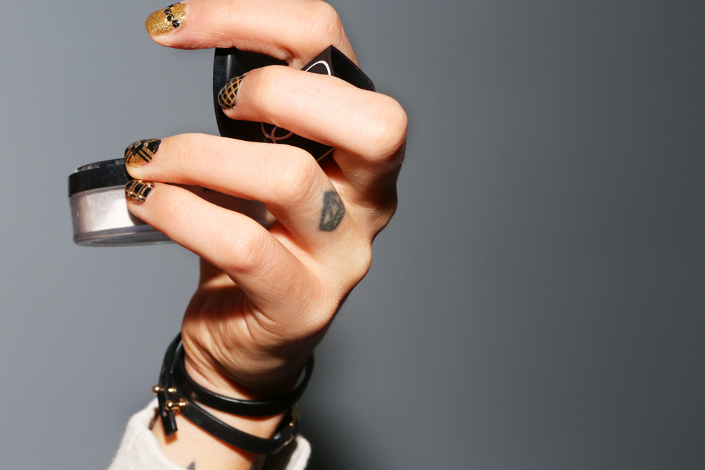 Right now, my other must is nail art. I got into it through M.I.A., when she was involved with putting out our first record. She took me to WAH Nails in London, which was insane. But here, I get them done by Ria Lopez, whose brand name is RiaNailz. She’s a good friend of mine—she helps me with wardrobe and accessories choices, and she’s a really badass nail artist. I got these done the other day. She does polish art and then top-coats them in a gel so it lasts longer. She actually just designed these Rad Nails nail wraps based on the album artwork for Bitter Rivals for our merch booth on tour and on our website. I feel like concert merch is still one of those very male-dominated things where all you can get are boxy t-shirts, so we wanted to do something that girls would actually get excited about.”