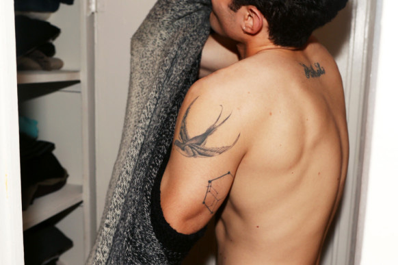 Harry Brant: “I’m super into a beauty ritual. Like, occasionally I’ll put on Clé de Peau Body Cream, Lubriderm, or Vaseline and Saran Wrap myself. Here’s what you do: you put it all over your arms, hands and feet, put on a pair of socks and then you wrap your arms and your elbows, and then… you go on a jog. [Laughs] Seriously, it just makes your skin so freaking soft, like you wouldn’t believe.” [The Top Shelf: Harry Brant, Student]