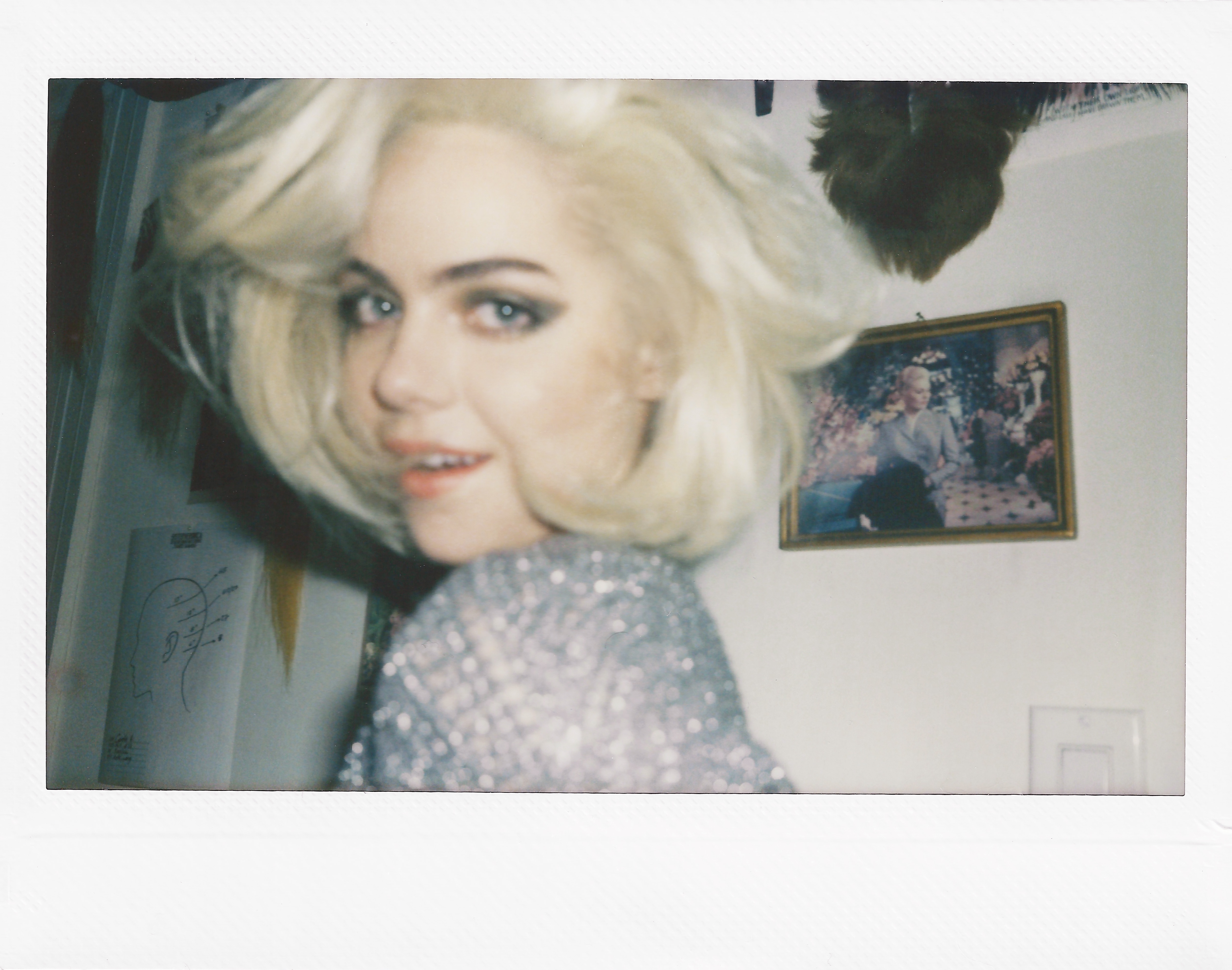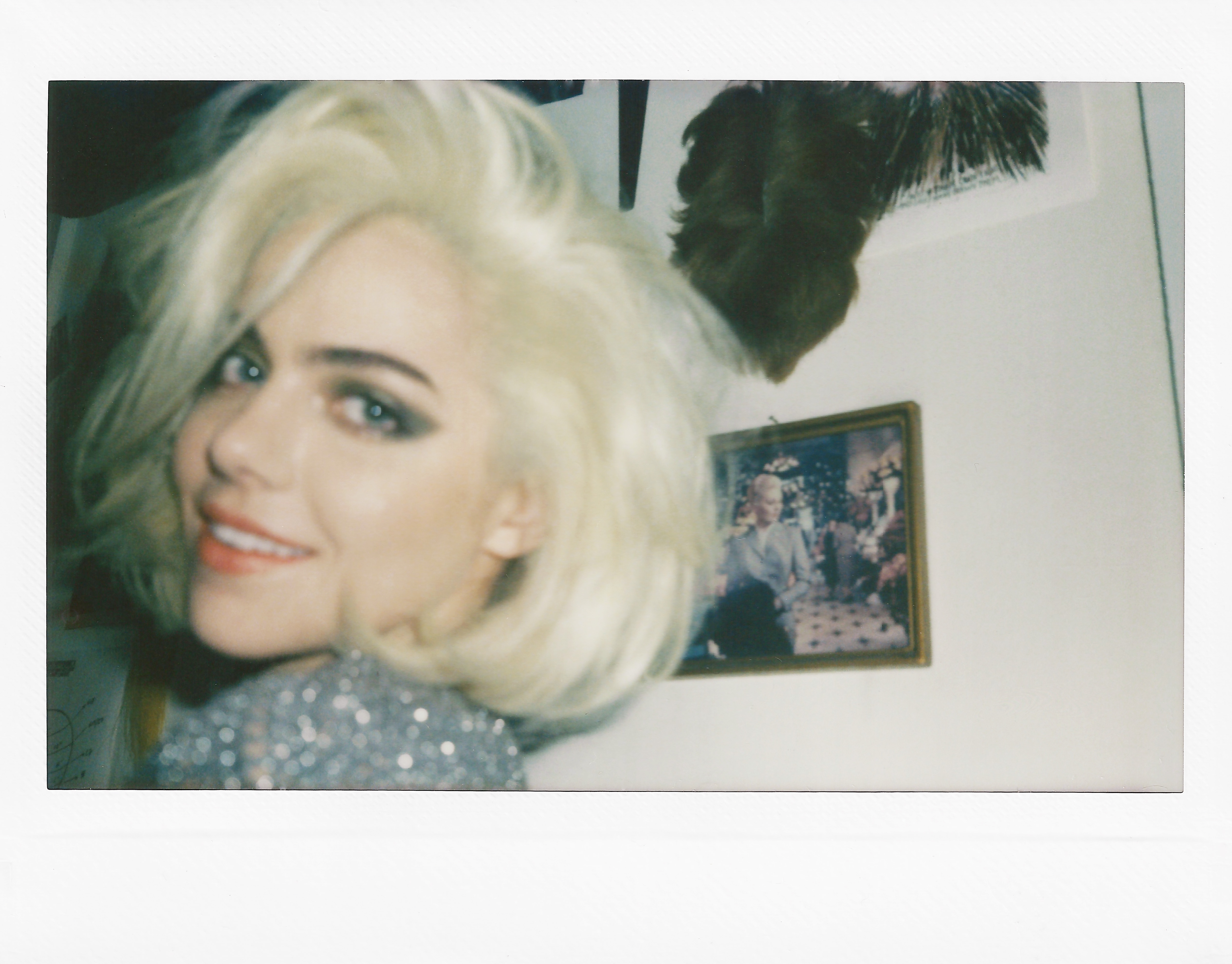 -Did you see Lady Gaga's Versace campaign? Ash blonde paired with any soft sherbet shade, like orange and pink or lavender, is a killer combination. We used Smashbox Be Legendary Lipstick in Melondrama, and added an angular eye to give a Debbie Harry vibe to the Marilyn hair.