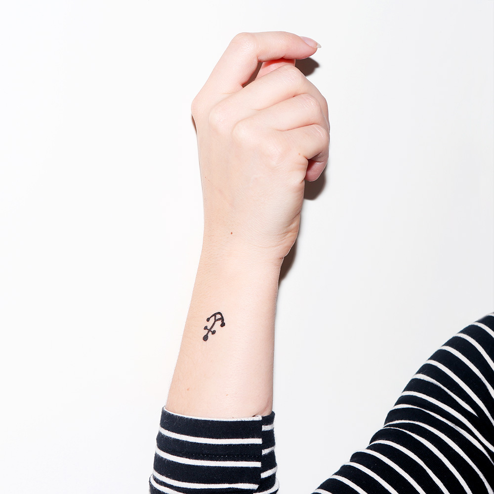 Remember her 39th Gloffice birthday celebration, wherein we literally consumed her, like the Body of Christ during Holy Communion, in the form of customized cupcakes? (These actually did taste better than skinny feels, if anybody's wondering.) This year, which is Ms. Moss' 40th birthday, we decided to aim higher. Could we make ourselves a bit more like the fashion icon? Yes, yes we could. So we called airbrush-makeup gurus Temptu and asked them to do us a solid: recreate all of Kate's well-documented tattoos, but in temporary form (we're not that obsessed). After all, imitation is the sincerest form of flattery. Is it a little Buffalo Bill? Maybe… But #YOLO, and Kate Moss only turns the big 4-0 once.