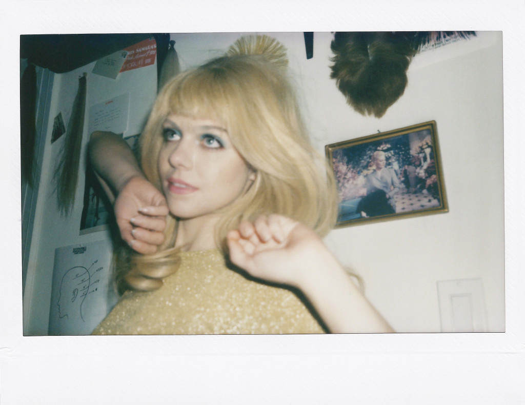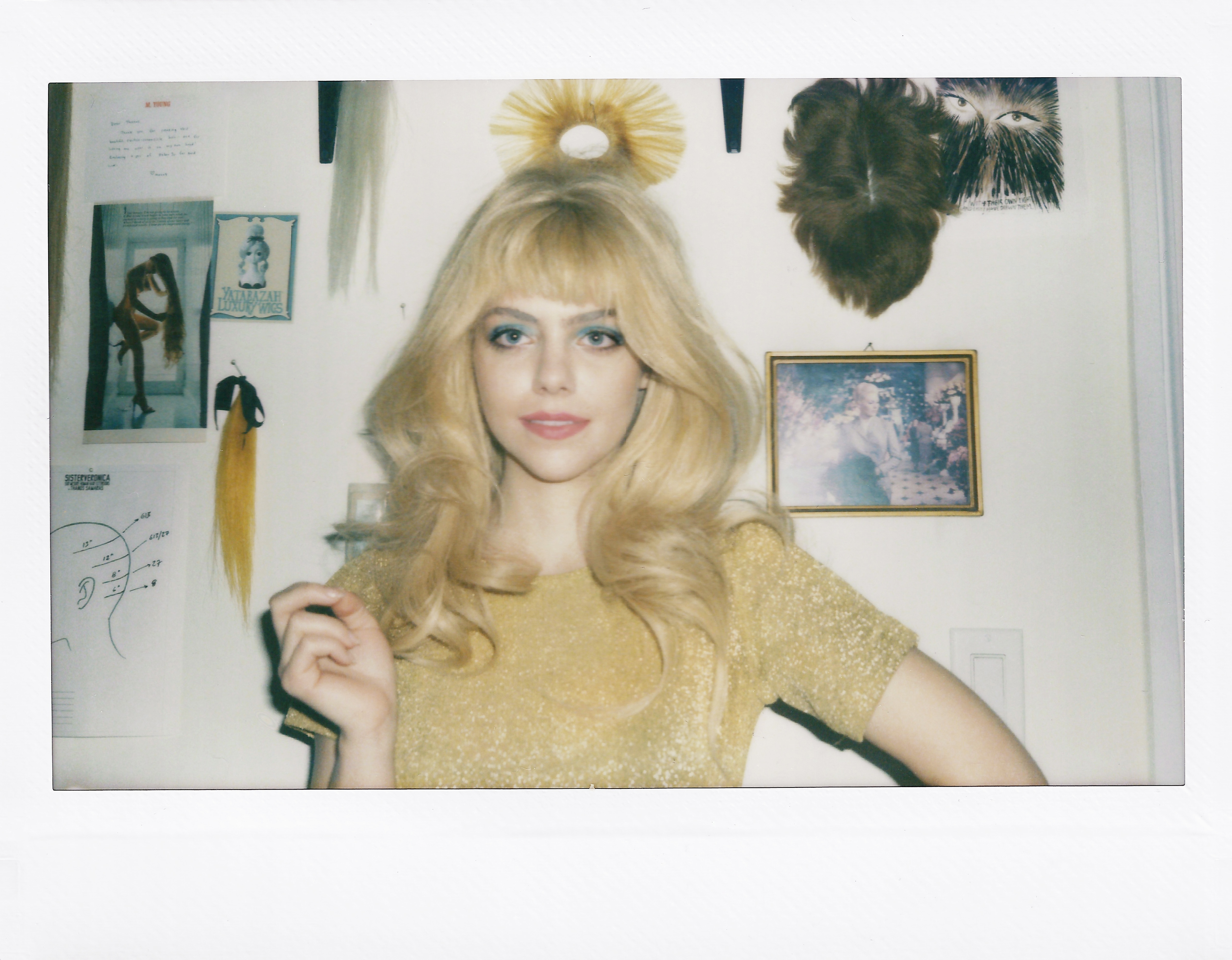 -Oversaturated aqua-blue matte cream shadow just above the upper lashes (we used Nars Eye Paint in Solomon Islands) and powdery pink lips have a fun, Marianne Faithfull feel. Or mid-century Texan housewife, depending on how you feel about huge hair and bangs.