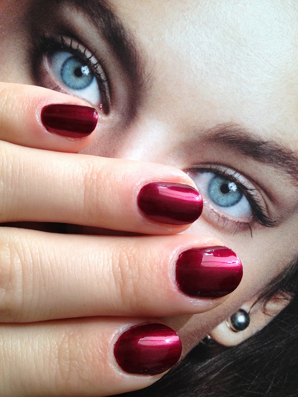 China Glaze Red-y & Willing : “I'm not a huge fan of true red nails, I'm more inclined to go with something moodier like China Glaze Red-y & Willing . It's more of a burgundy, so it feels less in-your-face than a candy apple color, and it's metallic. I like metallic polishes because they dry so quickly.” —Annie Kreighbaum, Senior Editor