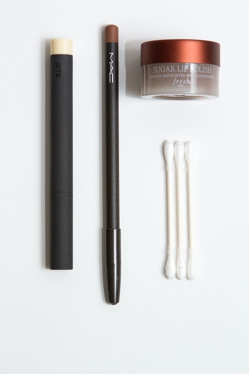 Before applying any of these, let alone getting drunk on wine, take measures to assure your lip color stains only where you want it to. For a flake-free surface, I like to gently rub Fresh Sugar Lip Polish onto my lips and rinse with warm water. I dab them dry, then fill everything in with Bite Beauty Line & Define Lip Primer. Darker colors can make lips look thinner, but this moisturizing primer slightly plumps your skin, creating a smoother, fuller surface to apply your color. Finally, to help color within the lines, I always use MAC Lip Pencil in Stripdown. The shade is just a touch darker than my natural lips, so it helps set some boundaries for your lipstick. Keep Q-Tips at the ready, and everything will be OK. And, if not, at least you have a drink in your near future.