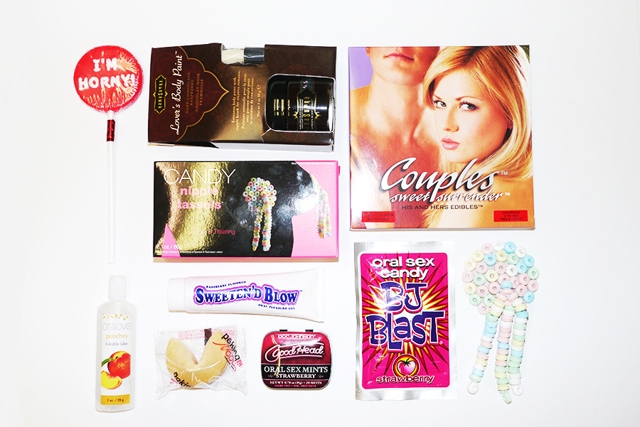 Valentine's is a day of magic, flowers, and ill-considered attempts to have creative intercourse. Many of these involve “food' products, and many of these “food' products are currently in our office. Today, in honor of our affection for you, dear reader, the two of us will go where no humans outside a Moonlite Bunny Ranch trailer have gone before, and attempt to spend the next 24 hours consuming only edible adult novelty products—a well-balanced diet of gummie underpants, candy nipple tassels, gag-suppression mints, a whole bunch of lubes (we needed something low carb), and more toothsome delights from the back room at Fantasy World.