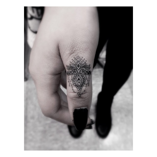 Don't jinx your relationship, and also don't be a moron:'What I'm doing is more individual, specific to the client, rather than just choosing something from a tear sheet that someone might think looks cool but is actually offensive. Although now, too, some people will go straight to the knuckle for their first tattoo—I do it sometimes, but it’s really not something I like to do. Like, if a kid comes in and he doesn’t have anything on his arms or anywhere else, you’re not just going to tattoo his hands or his neck. But it’s not as taboo as it used to be. Though the ones I do on the fingers are so delicate that, even though technically it’s still the hand, it’s a different kind of thing than a traditional knuckle tattoo. And I will do a lover’s name, but I'll tell the person straight-up that it’s a curse. I’ve covered those a couple of times,”