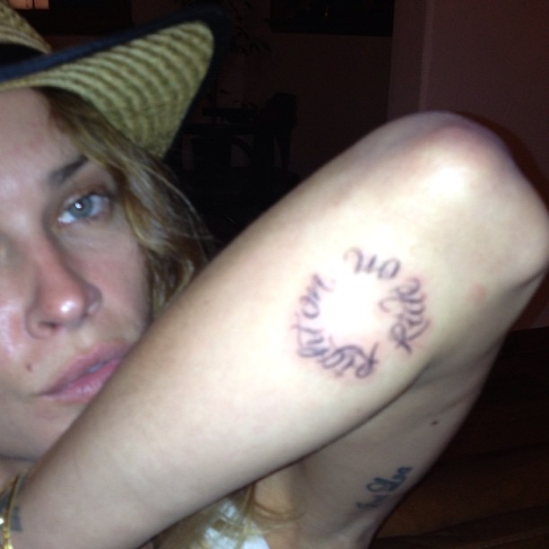 New tattoos are moody, scabby teenagers: “Right when you first get a tattoo, it will be red and a little puffy and the skin will be very raw and broken. Within the next couple of days, depending on the kind of tattoo you get, it should start to dry a little and get scabby or kind of flaky—that’s when you just use a little bit of unscented lotion. Then it heals, but it will still stay a little shiny because that’s new skin underneath—eventually that will even out. People tend to overthink the process of taking care of their new tattoo, and they actually end up getting it infected. When I started getting tattoos, five of them got infected, and I thought I was allergic to the ink. But it was actually too much lotion, too much anti-bacterial this, or anti-bacterial that, or keeping it covered or bandaged all the time—those things can be bad. Now I just use Cetaphil—fragrance-free—because my skin is very sensitive. A new tattoo's like having a teenager—you don’t want to mess with it too much or it will turn on you,”