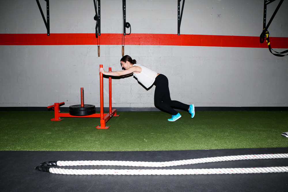 Fourth Circuit : Ropes, Sled Pushing, and Plank. Repeat circuit four to five times.
