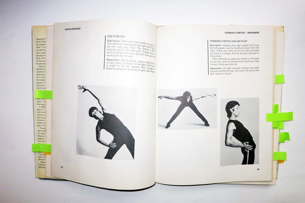 The workout guide book starts out with some simple isolation routines and stretches for beginners, and moves on to everything from bench presses to good ol’ pliés. Here is a selection of his sexiest stretch routines to do at home, plus a little bit of dieting, exercise, and hair wisdom from Danny Zuko himself. (Admit it, you totally discovered your love for bad-boy types in elementary school after watching him thrust against the bleachers while giving serious jazz hands singing “Summer Nights.” It was confusing for all of us.)