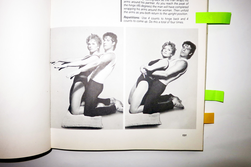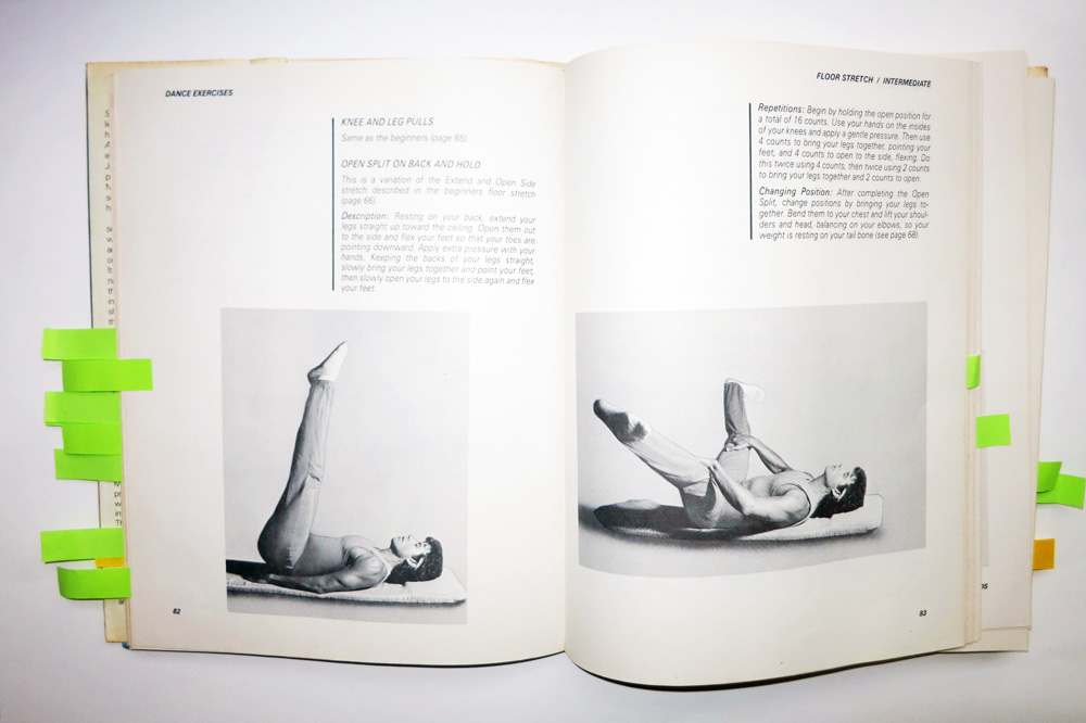 Repetitions: “Begin by holding the open position for a total of 16 counts. Use your hands on the insides of your knees and apply gentle pressure. Then use 4 counts to bring your legs together, pointing your feet, and 4 counts to open to the side, flexing. Do this twice using 4 counts, then twice using 2 counts to bring your legs together and 2 counts to open.”