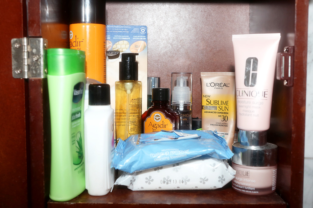 I need to make sure to take care of my skin, too, because I’m almost never wearing makeup. I’ve been a Proactiv user since I was 19. I love it, but there’s something in it that bleaches my towels! Backstage, I use Neutrogena Makeup Wipes. And at night, I love Clinique Moisture Surge Overnight Mask because it’s heavier than most moisturizers. I feel awful when I travel, so as soon as I get back to my hotel room, I put on Bliss Triple Oxygen Instant Energizing Mask. It foams up and looks crazy, but when I’m done I feel really hydrated.