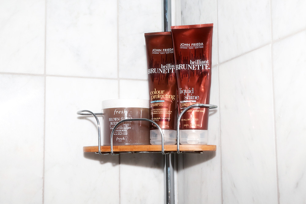 My everyday beauty routine is basically putting my hair in a bun and wearing lotion on my face. We wear so much makeup on stage that if we wore it during rehearsals, too, our skin would hate us. And the buns are pretty awful on our hair. We use so many bobby pins—it’s insane how many cases of bobby pins I have—and I get a lot of hair breakage. One trick I’ve learned is to use conditioner instead of hairspray to make my hair stay back—I use John Freida Brilliant Brunette Liquid Shine Conditioner, and also the Brilliant Brunette Liquid Shine Shampoo to wash it.