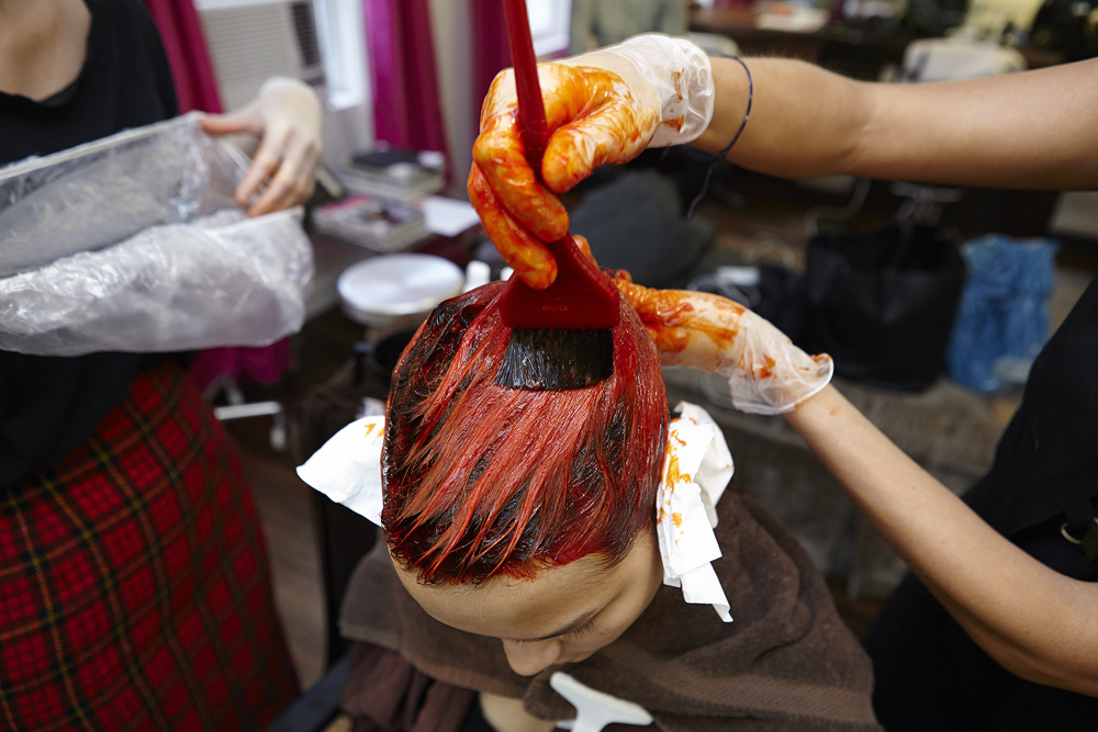 Our pal—who happens to also be the go-to NYC colorist for all things blond—Aura Friedman sent an email last week with a pretty enticing subject line: “Charlotte Carey Makeover.” You may have noticed that we're already fans of the ice-blond model, so we were intrigued. Even more so were the inspiration images attached—they were going to go bloody, firey red. More info and photos were promptly requested.