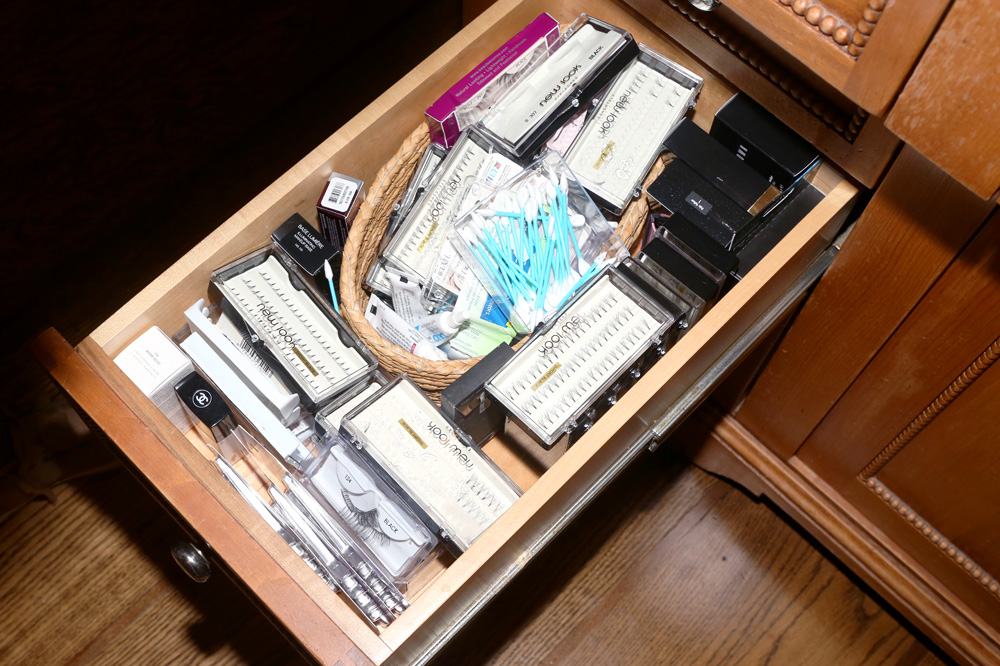 Christie: Sailor just got me into purple lipstick—she took a photograph wearing it and she was so gorgeous that I got obsessed and thought, ‘Why not try it?’ I bought this L’Oreal Wet Shine Stain in Berry Persistent, and what’s cool about it is that it really has a lot of staying power for a dark lip color. When you put it on, it almost feels like you’re painting and then it dries, but it’s not drying. And if you want your lips to look big and have fullness, there’s just something about a nude lip. I have a drawer full of nudes, my favorite being Sweet Dreams by Nars. I have a bunch of reds, too, but those are for Roxie [my character in Chicago]. And the lashes. The New Look brand is really good, but the Clear Band Style 221 by Beautee Sense are the lashes you wear in big theaters. I picked up a lot of makeup and tricks from performing, because you have to do your own stage makeup.