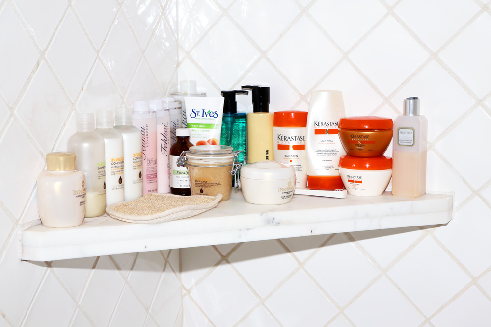 I also have to say, I love this— Laura Mercier Almond Coconut Milk Soufflé Body Crème. I get so many compliments on it—I have multiples, I even keep one in my purse. Every time I go to SoulCycle or something, someone will say, ‘Oh you’re the girl that smells so good.’ But other than that, I don’t really wear a lot of fragrances. They tend to make me nauseous. I have giant pots with Jasmine trees, and orange blossoms, and these giant gardenia trees just outside the kitchen door and along the terrace. The smell of everything that surrounds my home—that’s the smell I love. And then I have all the magic potions, too—all these essential oils. I put my essential oils in the divot in the steam room and when I turn it on, the oil heats up and the aroma fills the room. And I do Epsom salt baths all the time. I got into it when I was playing Roxie Hart in Chicago. After three-hour shows and eight-hour days, you have to do this for your muscles. I would get home from the theater, usually around 11 at night, and I would make a bath, and then I would do it again in the morning. And while I soak, I do yoga stretches in the tub.