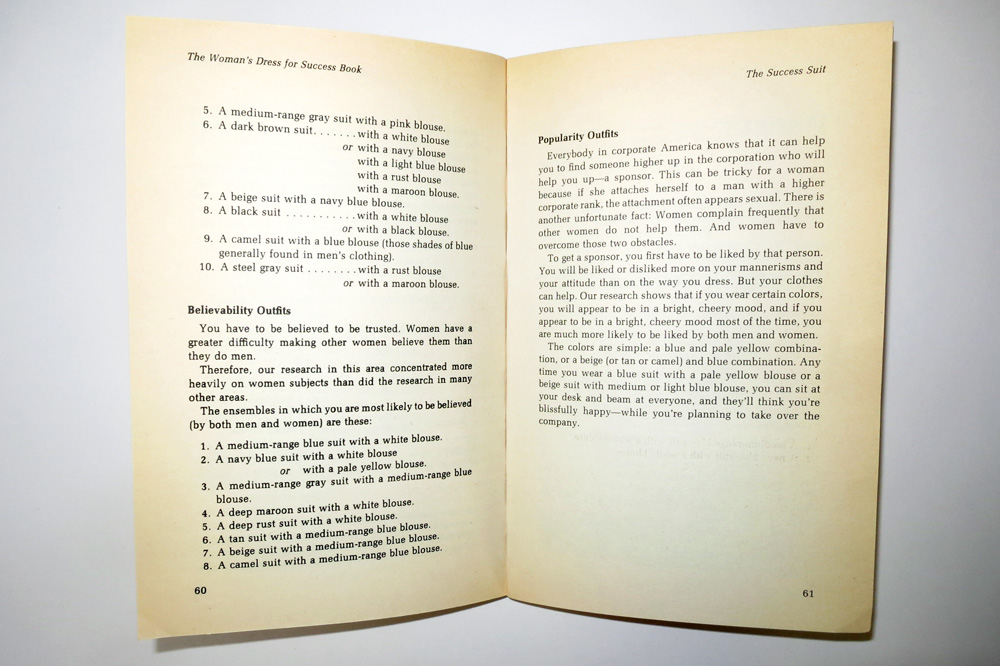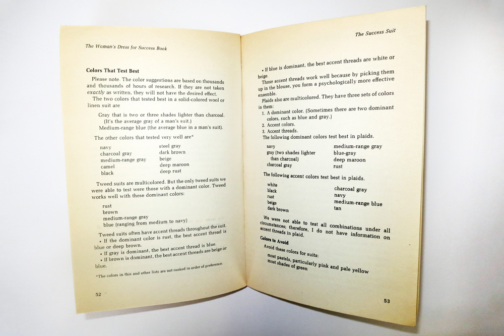 When John T. Molloy published The Woman’s Dress for Success Book in 1977, he invented a whole new discipline: “The name of the science I practice is wardrobe engineering. It is an elaborate process that involves sophisticated data-collecting techniques.” And that's not all: “After the information is collected.” Molloy writes, “it is analyzed and stored in computers.”