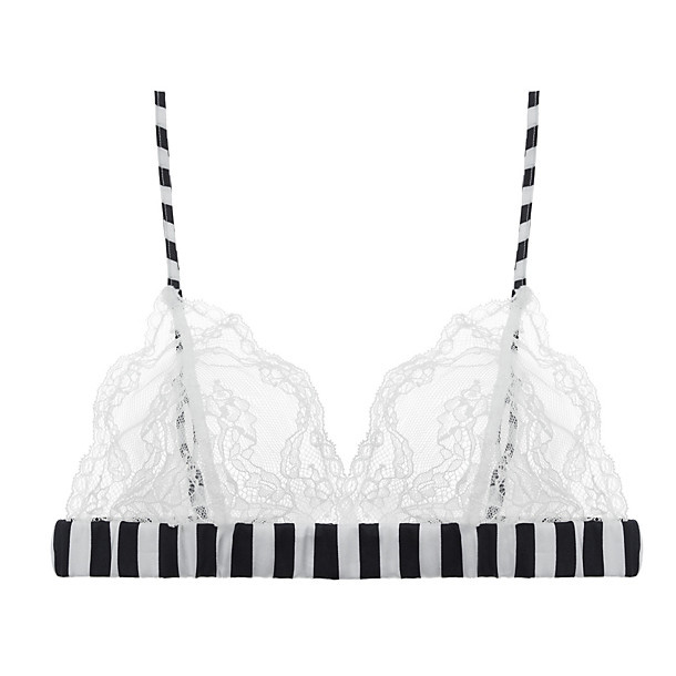 Fleur of England Brighton Boudoir Bra : If you have a tank top with low-slung armholes, or a dress with an open back and free-boobing is no option, go for a bra that has an interesting band. Let these black and white silk stripes do the accessorizing.