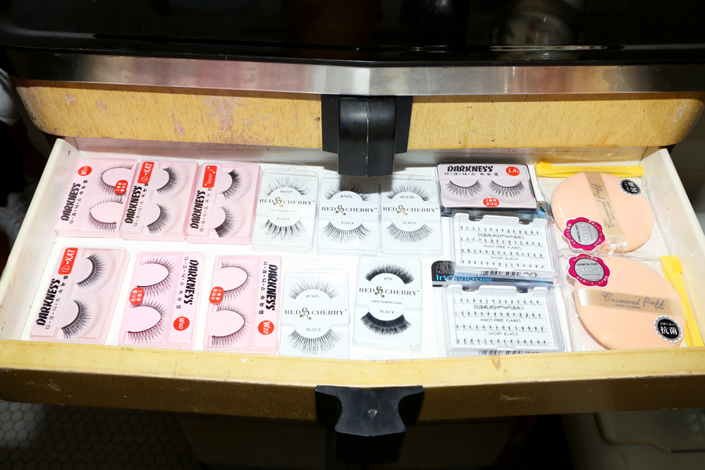 But eye shadow isn’t really my thing, I’m more of an eyelash girl. I use Lancôme Definicils mascara—I’ve tried everything, and if there’s a better one, let me know. My daughter is always like, ‘Mom, I really need an eyelash curler’ and I’m like, ‘Evelina, I don’t have one because I don’t want my eyelashes being curly.’ I like the almond eye, although I put a couple of individuals on today. I think that curlers break your lashes, I don’t understand that look.