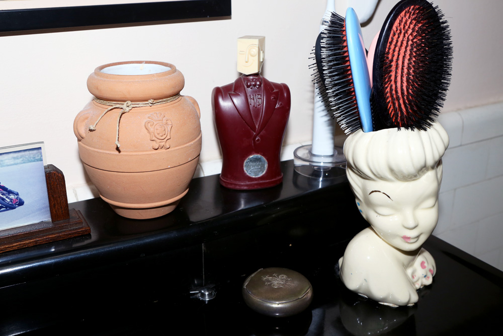 I’m big on hair-removal, so I have one of these trimmers from Bed Bath & Beyond, and tweezers, and a body brush for dry brushing. I get lasered all the time, which is a real drag; in New York, I go to Dr. Colbert. It works, but it comes back every five years or so. My Latvian roots means my body hair is, like, black. I started collecting vintage Lady Schick electric razors forever ago, I just thought they were so cool-looking. I love the idea of getting rid of hair with something so beautiful and elegant.