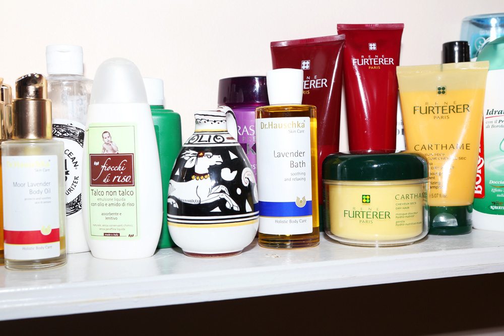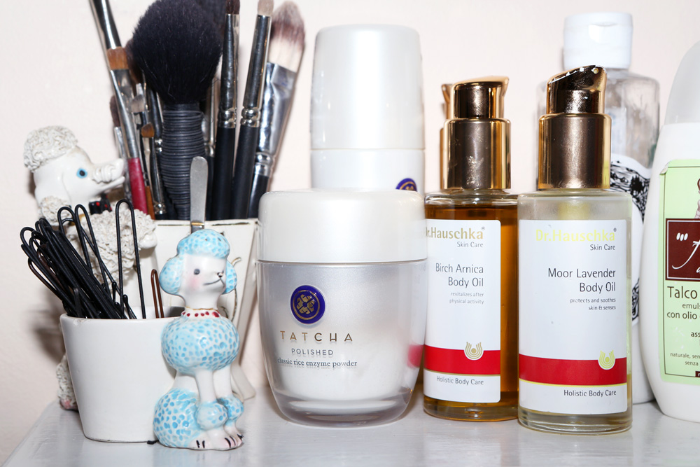 In terms of skincare, I slather Tatcha Ageless Enriching Renewal Cream on my face in the winter. If I want a little extra grease, I have this Dr. Hauschka Rose Light Day Cream. It’s super greasy, the ‘light’ is useless. I have olive oil that I put on my body, but my favorite is the Moor Lavender Body Oil by Dr. Hauschka. I mix it with this Skin Trip that my mother has been using since the ‘70s. I’ve been using Dr. Bronner's Eucalyptus soap forever. I love it. It feels good and fresh on the va-jay-jay. And we always have bidet soap in the house. We have a bidet in Italy and my husband is really pissed off that America doesn’t have them. He thinks it’s disgusting. Then, I have the Rene Furterer Carthame line for my hair, and the Okara line, and Kérastase, because my hair is colored and I don’t want to strip my color when I wash it.