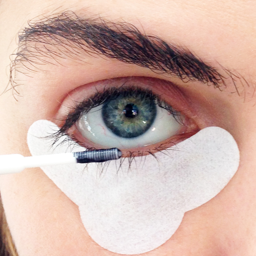 The kit can be used on brows or lashes, and comes with a packet of cream color, a packet of gel activator, soft paper under-eye shields, an applicator wand, a tiny comb, and some card stock on which to smush out the colorants—your “work station.” You should also have on hand a magnifying mirror, some petroleum jelly, cotton swabs, disposable mascara wands, and tissues. This trial was a momentous occasion for me, as it marked the first time in my life that I’ve ever performed an allergy test. Visions of swollen, puss-filled lids filled my brain as I read the warning label: “Avoid contact with skin and eyes.” Because that’s reasonable instruction on a lash-tint kit…? The patch on my arm was stained grey, but seemed fine otherwise after 24 hours, so I proceeded with the experiment: