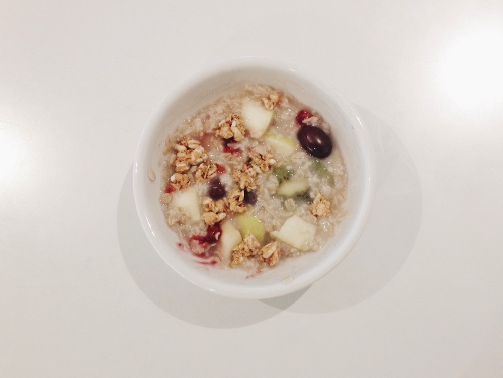 Second breakfast: For a solid course, I prepare a small bowl of oatmeal with fruit and gluten-free granola.