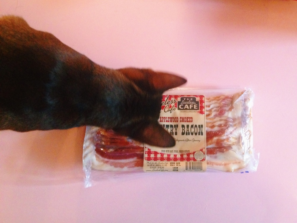 Dinner : Loveless Cafe Applewood Smoked Baconand a bag of sautéed spinach with Urbani white truffle butter. The bacon is unreal. The butter melts in streamlets and emits puffs of truffle-scented steam. This feels like something Oprah would actually eat: equal parts abstemiousness (spinach) and luxury (truffle butter). I am googly-eyed with lust.