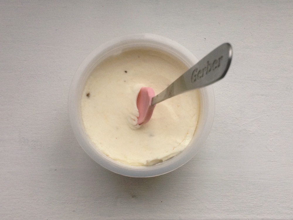 After the spinach I eat some truffle butter straight from the carton, using a baby spoon, like a monster. I limit myself to 1/6th of the container and am pleased with my sensible portioning (it's a tiny container). Offer some to the cat, but she declines.