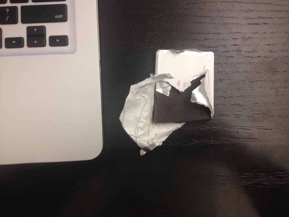Breakfast: Oprah Chai Latte and 2-3 tbsp cashews. (“A small handful” in Oprah’s words, but for that to make sense you’d need really freaking tiny hands.) I feel so nauseous from last night I take a 10-minute nap at my desk.