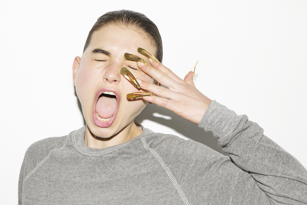 Paris Roberts (The Society) photographed by Tom Newton. Hair by Adlena Dignam using Bumble and bumble.
