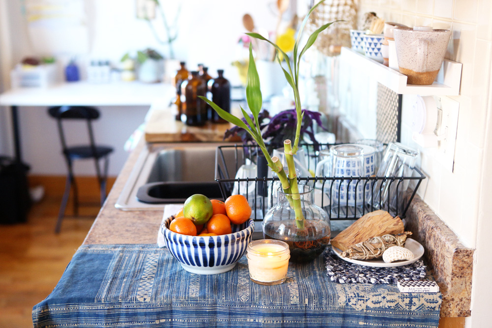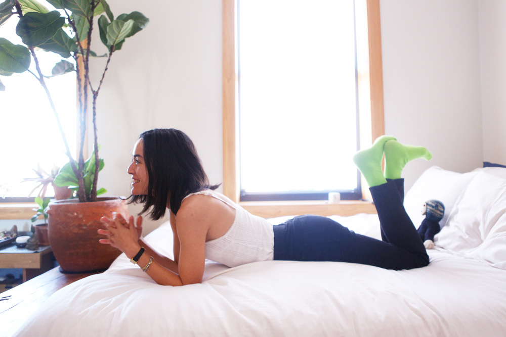 Other than that, I’m not really that kind of girl to wear makeup. Natural is just who I am, so I just don’t feel like myself if I’m wearing a ton, and I’m so on-the-go that I don’t even really think about it. I wake up at 6am to be at work by 6:30. For three months it was like this, seven days a week. It was pretty crazy. When you’re opening a restaurant, even on your days off you’re doing work. Now it’s nice, though, because I just started taking Thursdays and Sundays off, so I can get back into meditating again. I took a month-long Shambhala meditation class last year, but it’s been a little difficult to keep up with because of my work schedule, and it’s better if you do it at the same time every day. Even if you sit for five minutes, as long as you keep simple and sustain that, it’s really good. I usually do it when I come home to help me fall asleep and to not have lucid dreams. I will stare at the tip of one of the stones sitting in my meditation room and just meditate on that. I used to be a really anxious person, but not anymore. It’s very calming. My evening glass of wine doesn’t hurt, either.”