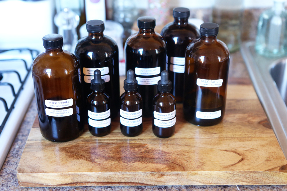 I like to focus on making ones that help balance my hormones and relieve stress. I have one called Holy Basil, which is good for stress. It’s a sacred Indian herb. I’m obsessed, and give it to all the girls at work. I’ll drink it in a little bit of water and I also have droppers of it. I buy the basil from Rose Mountain Herbs in Oregon. That’s actually where I source everything for the apothecary. They’re really amazing. There is a tincture with Black Cohosh, which is an estrogen balancer, so it’s good for women. I have an irregular menstrual cycle so this is really good to take on and off, but definitely don’t take it when you’re pregnant. That and motherwort have really balanced me out. There’s also maca root powder, which everybody loves. It’s like happy pills—a really serious mood lifter.