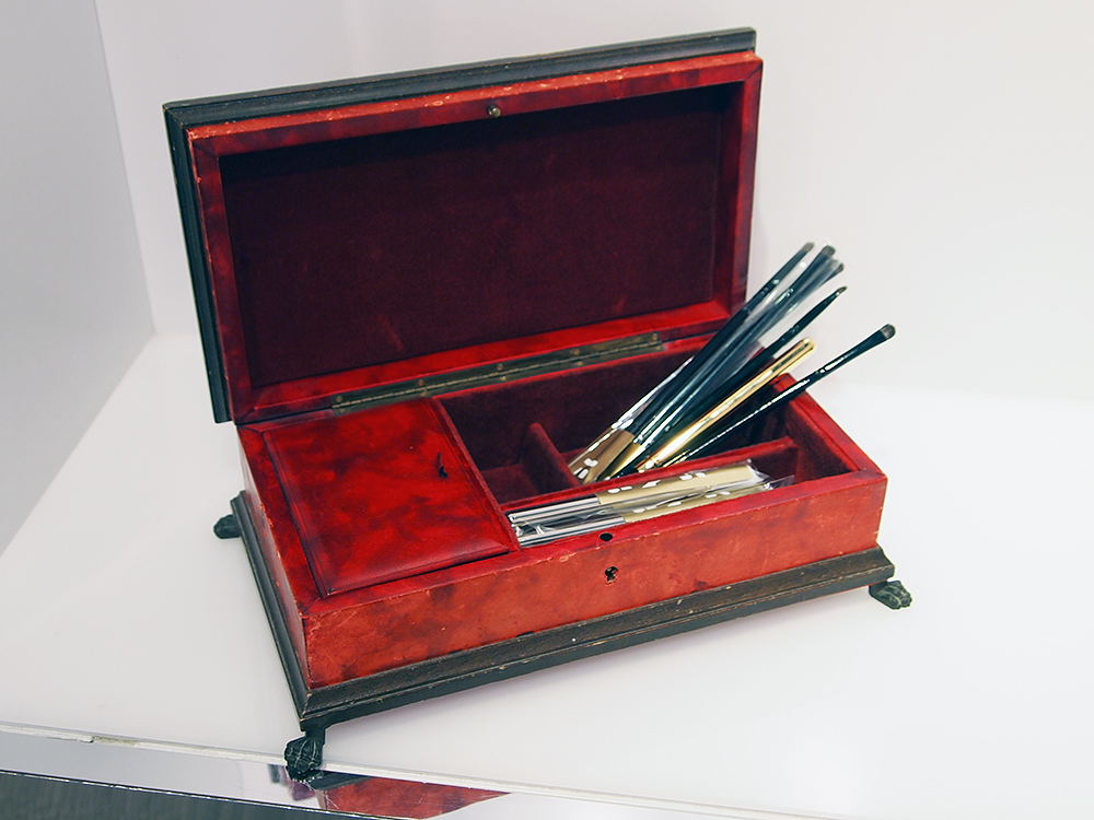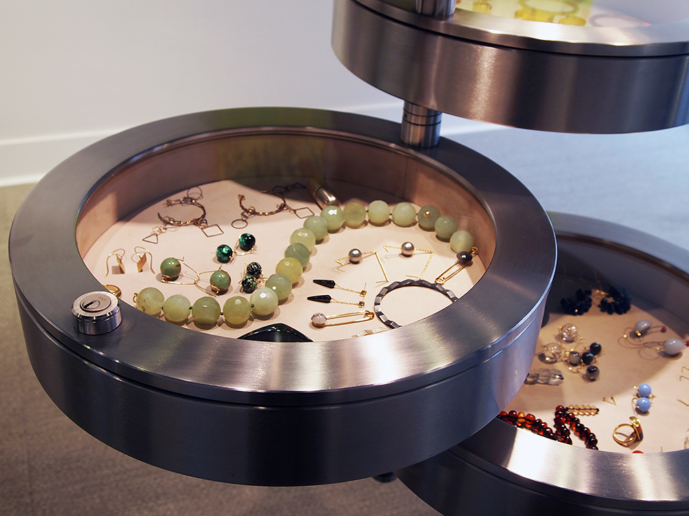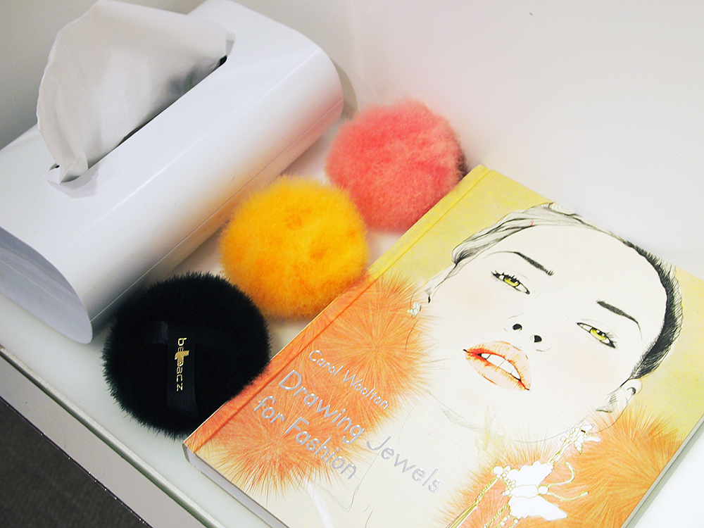 The shop and gallery space sits in a Regency townhouse just opposite Claridge’s hotel and hosts rotating exhibitions—currently Danish artist Morten Skrøder Lund. For those who want to wear their precious materials on their face as well as around their hands and neck, Belmacz also has their own beauty line. Inspired by artist pigments, gold-and-gem-flecked products are stored in antique artifacts around the store. Greta Garbo’s jewelry box is used to hold makeup brushes and hand-made eiderdown puffs for powder application.
