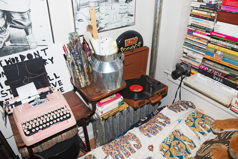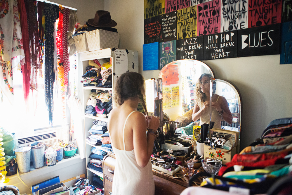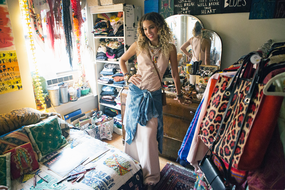 I feel like when you have an apartment this tiny, you have to be good about hanging your clothes up after you try on a bunch of outfits while figuring out what to wear. I’m a vintage hoarder, so there’s stuff everywhere, but it all gets put to good use! I have this philosophy that clothes are made to be lived in. There have been so many things I’ve done when what I was wearing was such an important part of how I enjoyed the experience. If you go out dancing and you have this amazing dress that twirls, it’s so fantastic. I get that people become attached to a really amazing piece and don’t want to ruin it, but I also think if that happens, it just wasn’t meant to be there for your whole life.