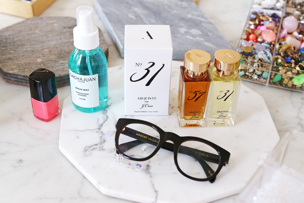 I use this Sachajuan Intensive Hair Oil after showering. I have super frizzy hair and I’ve tried everything—this is the only thing that will allow me to let my hair dry naturally. We carry them at J. Crew. I also use the Sachajuan Ocean Mist in my son’s hair. He hates when I do it, but it looks so cute. It totally works! I’m not lying. If I haven’t used something or I don’t like it I won’t talk about it—and we only sell beauty stuff at J. Crew that we’ve tried and really like. I truly think their products great. Also the packaging is nice and simple.