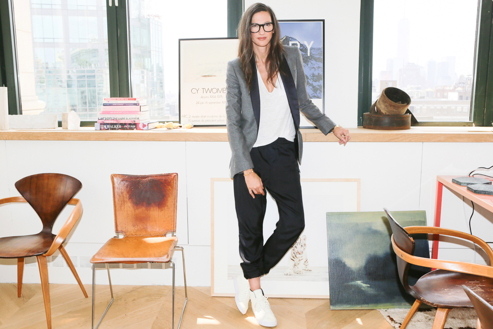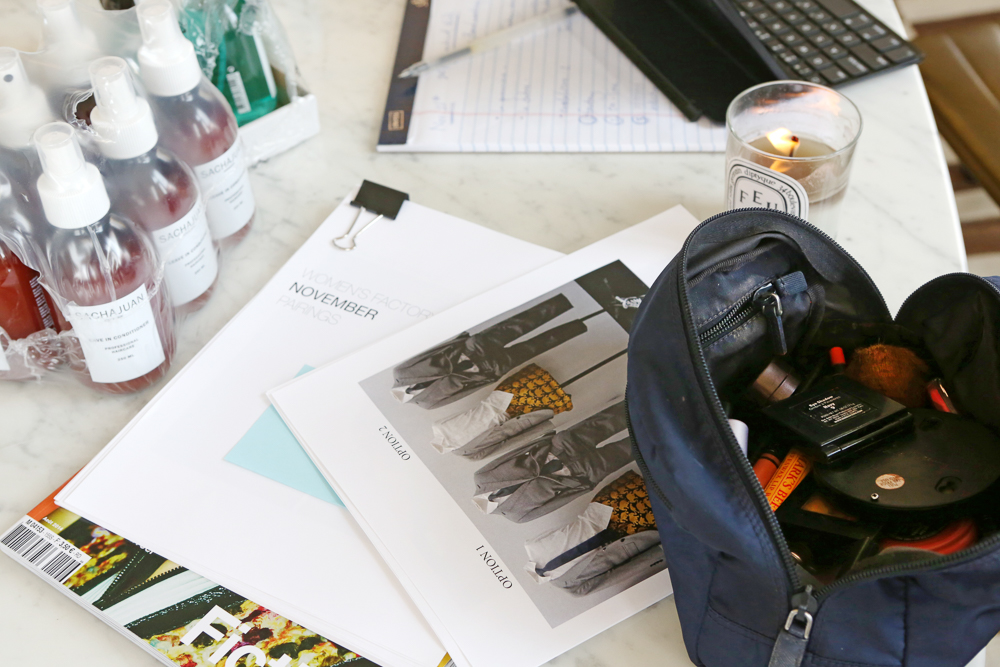 I don’t have one general makeup look, but it’s always either a red lip or a dark eye. Those are my only two choices, and I do them pretty regularly. I don’t have a lot of eyelashes, but the Chantecaille Longest Lash mascara is the only one that doesn’t get gloopy, and I use this Tom Ford Eye Defining Pen in Black. It’s got two sides—one’s very skinny and one’s a little thicker, and the genius thing is that when you put the cap on it pumps the liquid into the tip so it’s fresh for the next time you use it. Also, Nars just made the caps for their lipsticks magnetized, which I have to say is the best thing. That was my one beef with them—that the caps fell off. And then they totally rectified it! I usually wear Heatwave. My son, Beckett likes my Bite Matte Crème Lip Crayon in Clementine, and he’ll notice the difference; if I change it up he’s always like, ‘Mommy, what’s that?’ Also I use this MAC Prowear Lip Pencil that’s kind of a perfect no-color color called Staunchly Stylish.