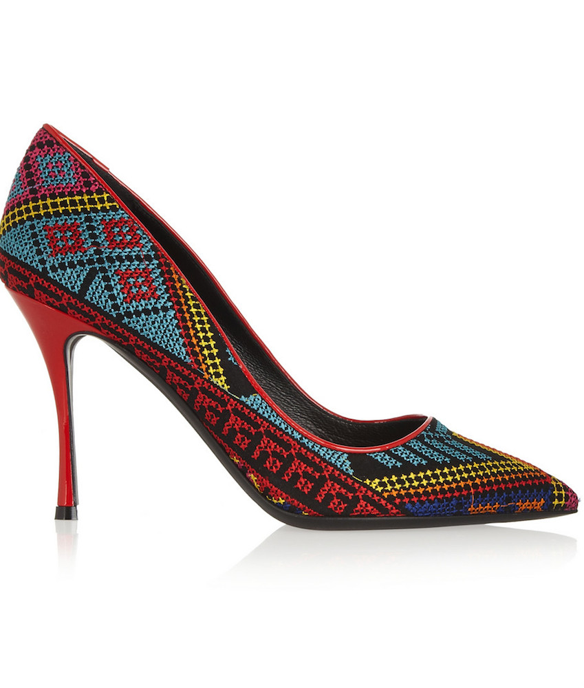 Nicholas Kirkwood Embroidered Patent-Leather Pumps: These pointed pumps are the Maserati of needlework; they’re made in Italy with micro-embroidery that channels Mexican tradition, and a sexy patent heel for good measure.