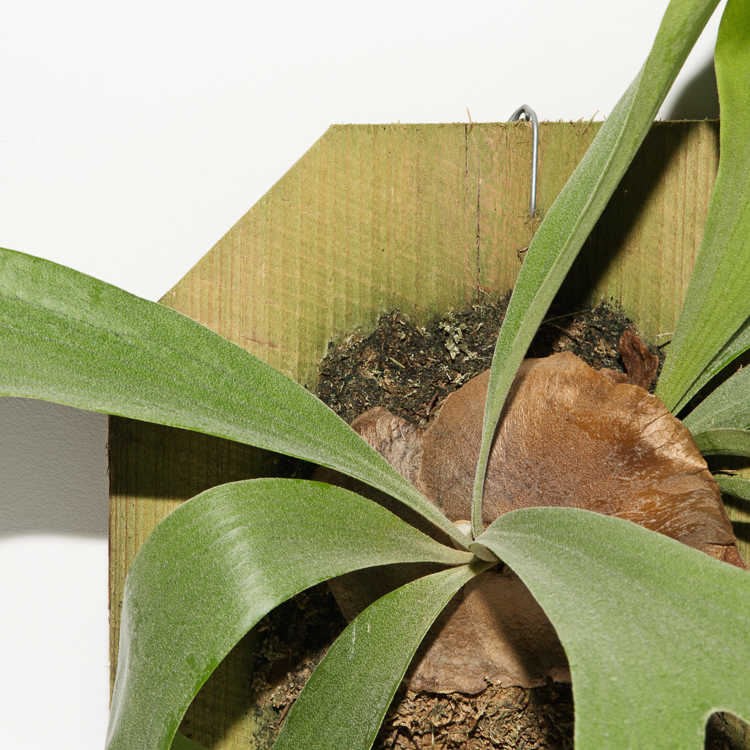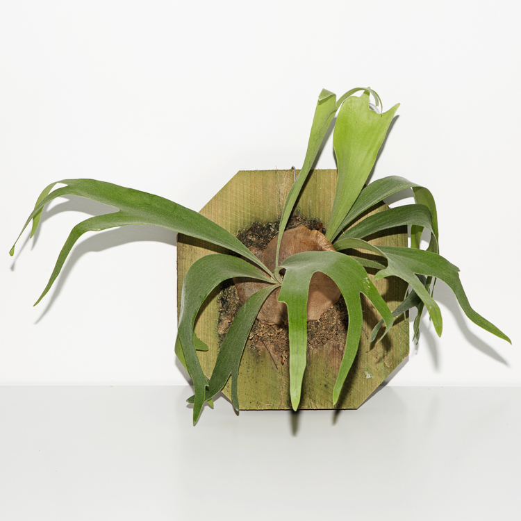 Hanging Stag Horn : “This type of fern with larger leaves is often mounted, but I like it hanging—it reminds me of a mobile. They need super sun, watering once a week, and a thorough soaking in your sink once a month.”