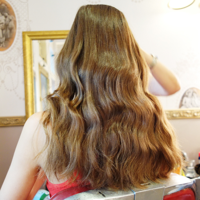 After finishing my makeup, I ran across town to Kropps and Bobbers to have my hair done. The salon is really close to my house in the Lower East Side, and Joni, the owner, has been cutting my hair for as long as I can remember. I wanted to do something different than the typical updo, so Joni gave me a chic beachy look that echoed the silhouette of my dress. She only used two products to give it shape— Pravana Super Shape Hair Spray and Kevin.Murphy Session.Spray.
