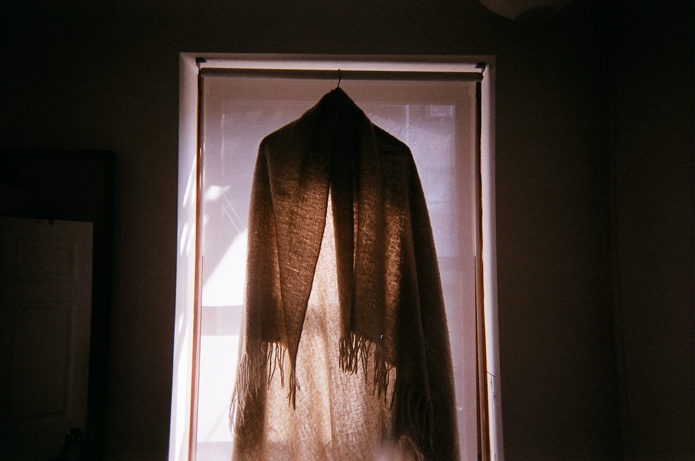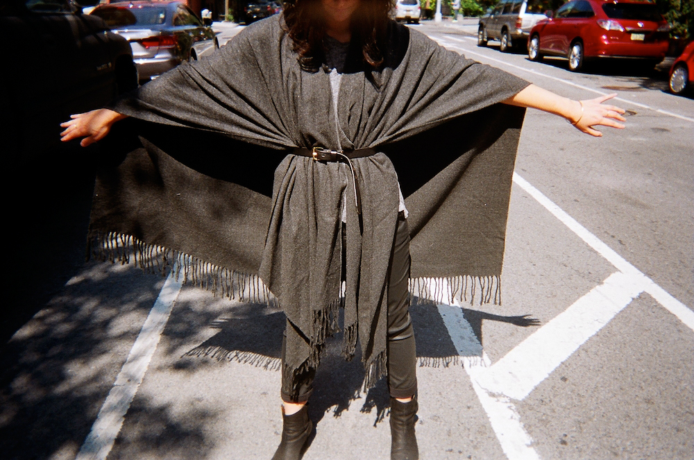 First, to the thrift store, a veritable poncho emporium. If your thrift store search had keywords, they’d be “soft materials” and “very, very large pieces of fabric.” Also, “fringe!” Using these indicators, I found a charcoal fringed number at Antiques Garage (RIP!) for $30. Then, at an Aspen thrift store—where the rich cast off their unwanted clothing and is my equivalent of heaven on earth—I found a cream-colored one. Besides the fact that it’s slightly itchy, smells of mothballs, the fact that I hardly ever wear it outdoors, and it makes me look like a Shetland pony—it’s perfect.