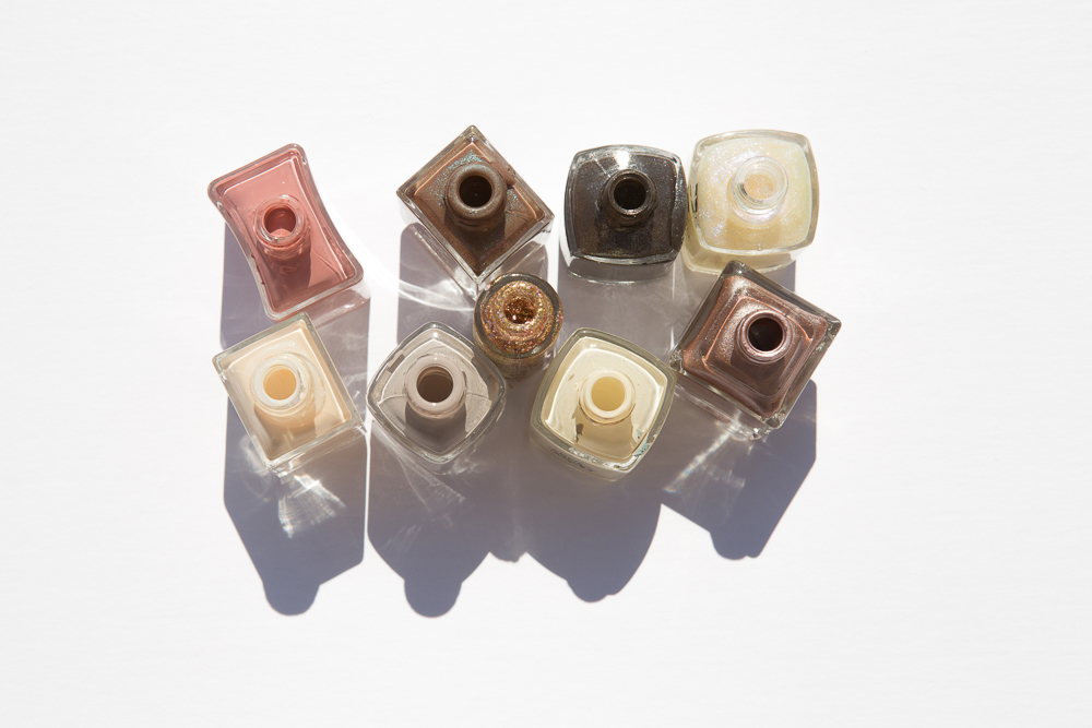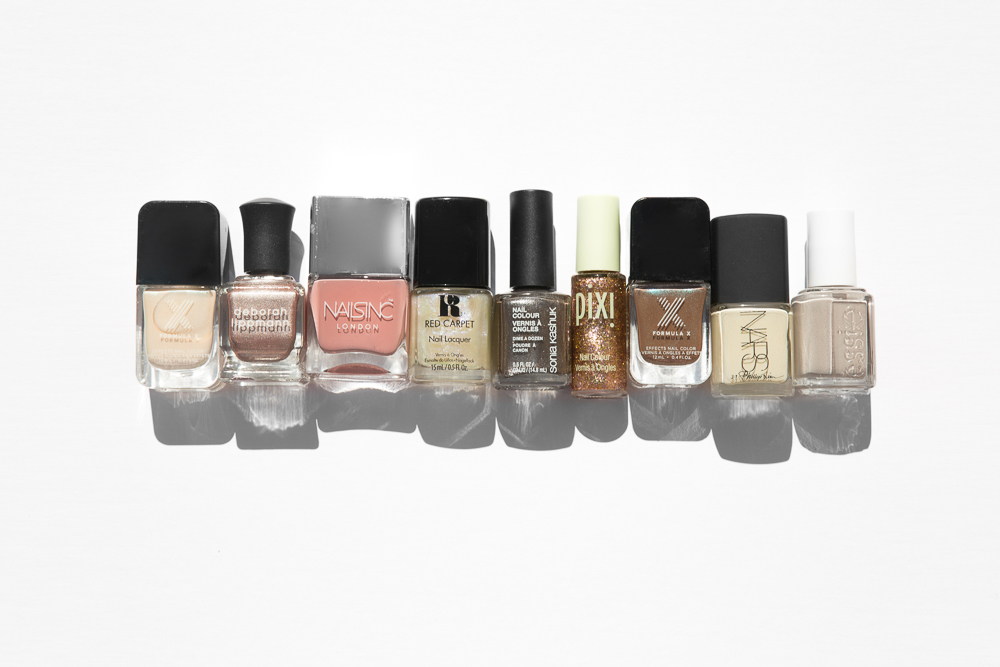 The New Nudes: Formula X The Brushed Metallics in Fate, Deborah Lippmann Nail Color in Lullaby of Broadway, Nails Inc Gel Effect Polish in Uptown, Red Carpet Manicure Nail Lacquer in Makeup Time, Sonia Kashuk Nail Color in Dime a Dozen, Pixi Nail Colour in Crystal Champagne, Formula X The Brushed Metallics in Determined, Nars 3.1 Phillip Lim Nail Polish in Anarchy, Essie Nail Polish in Take it Outside