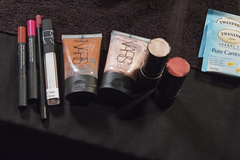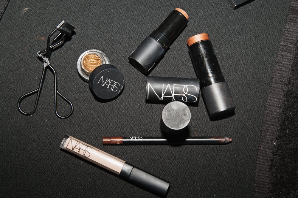 Tom's take: “This was so insane. I thought it would be an event and it was, but Gisele wasn't there! Anyway, the hair was all gooey and slicked back to death with a slightly frizzy wavy ponytail thing. The makeup was all Nars. Very simple—they used like four products (like at Prabal—Diane Kendal likes it simple and minimal I guess). They had foundation, a matte bronze Multiple for the cheeks, and a shimmery Multiple for the eyes. They also used a Nars gold glittery shadow for highlights and had a bronze glittery eyestick out as well, but I saw them just using the shimmery Multiple on the eyes. Also the eyebrows were bleached, but not all the way—they switched it up for each girl and they weren't the yellowy looking bleached eyebrows they usually have. The girl's eyes all varied a little as well. The makeup was sort of easy and loose, but the event coordinators were not.”