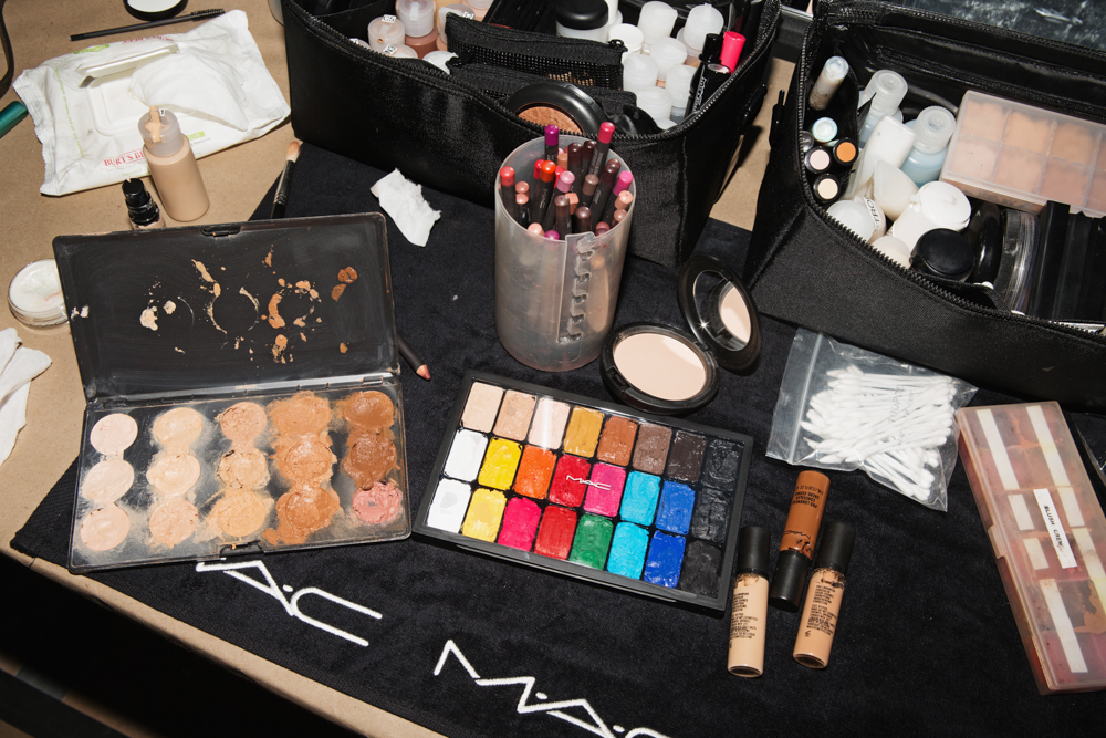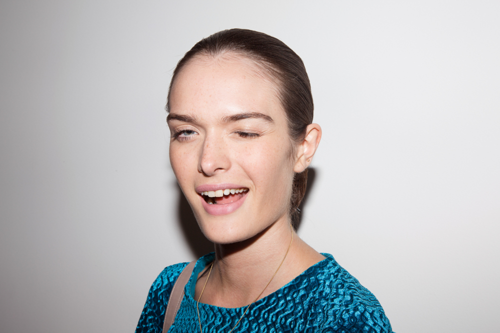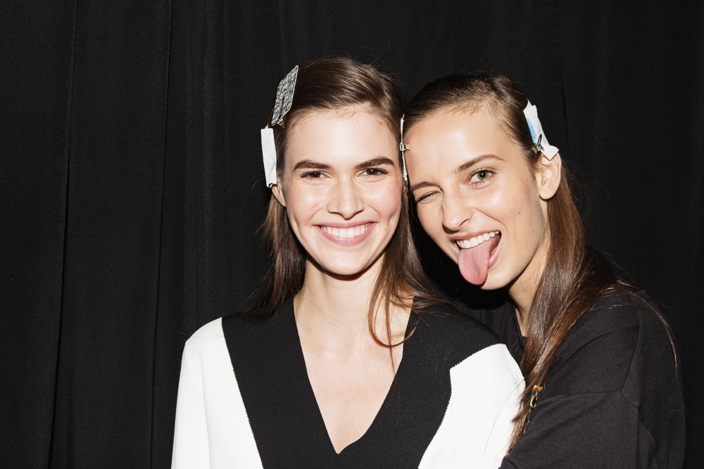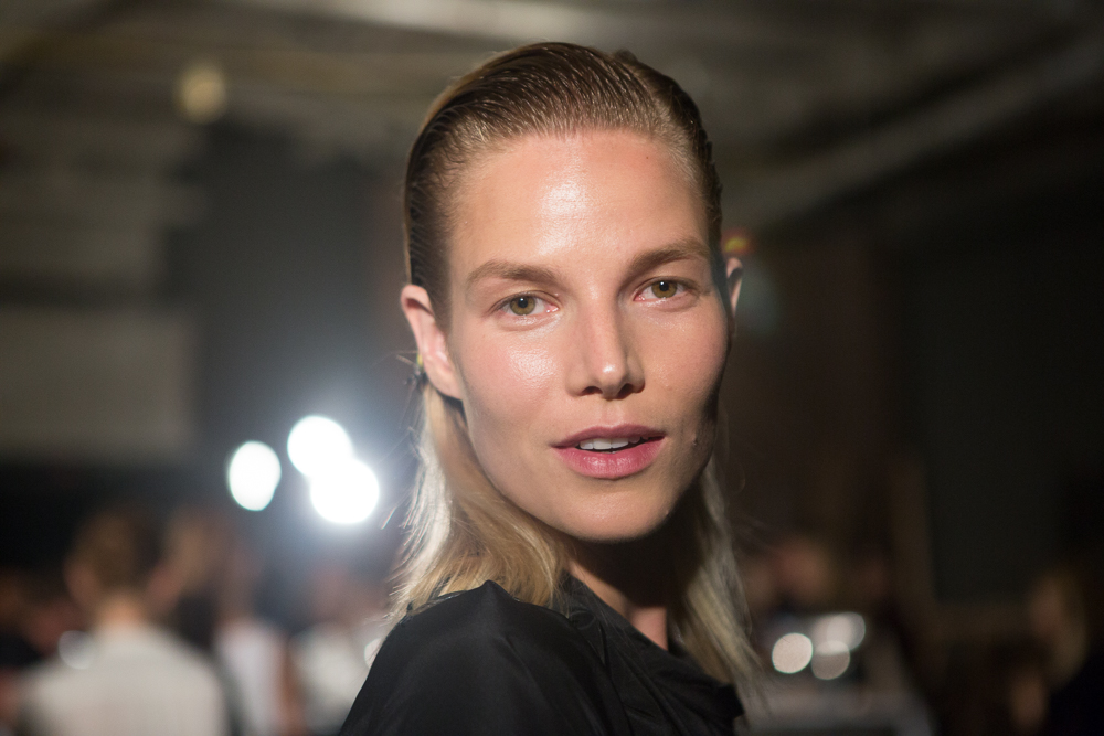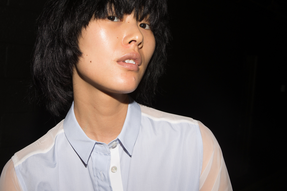 Tom's take: “I saw some Nars concealer/foundation backstage, but I am 100% sure they didn't use any of it. Or if they did they did it in the sneakiest way. You could see every 'flaw,' red blotch, shiny spot, freckle, etc. on every girl. It was super refreshing, I always wondered if Liu Wen even had pores or if her skin really even existed, it always looks like ridiculously un-realistically perfect even in un-retouched backstage stuff (I found out she doesn't really have pores—maybe one or two. The curtains have been drawn back you guys). Gigi was there & she glowed—whatever drugstore stuff she uses must actually work for her. Also there was a bit of a circa 2005 doll-faced model moment that happened—Heather Marks, Jessica Stam & Caroline Trentini were all backstage together. I didn't get a shot, regrettably, but it's OK. It would have been better if Gemma Ward had been there as well. And even though they have been around so long & they're all a bit older they looked really great, I'm sure they aren't super used to going down the runway with nothing on their face but they looked really damn good. Trentini's freckles were super prominent and she was super smiley. I have nothing to say about the wigs.”