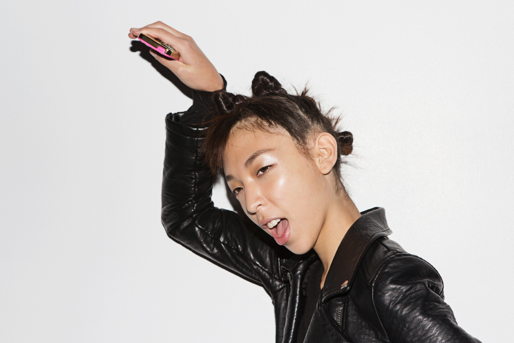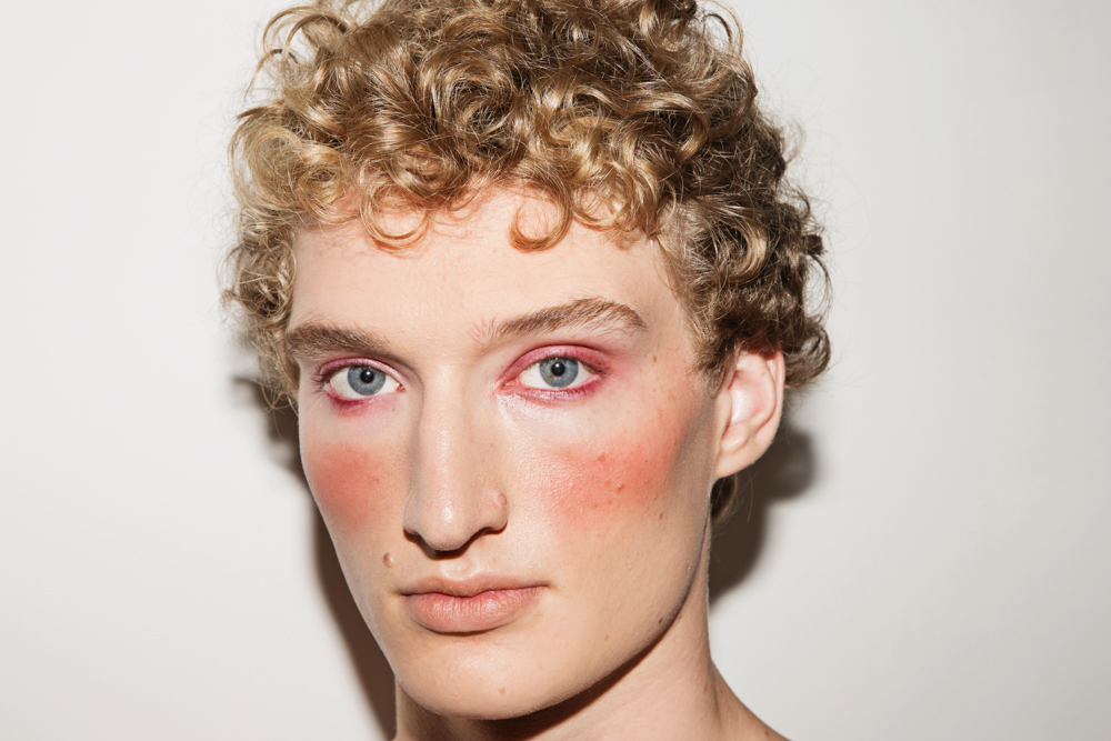 Tom Pecheux (MAC): “We want the girl to look very fresh and very girly, but not like a little girl—it’s about a youth with a twist, like Catherine Deneuve in Belle du Jour. The makeup is about satin skin, rosy cheeks, and pink lipstick, which goes slightly over the lips. We have to give the world what it wants—big lips! But we paint them with a brush, not with pencil. There’s white pencil in the inside corners of the eyes and a nude eyelid. And then, just a piece of false eyelashes, right in the middle. We do a lot of mascara on the bottom lashes, also in the middle, so it really opens the eyes and makes them look doll-like.”