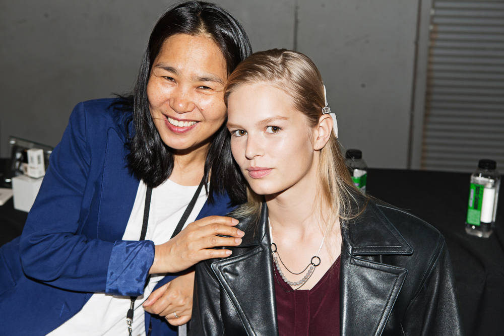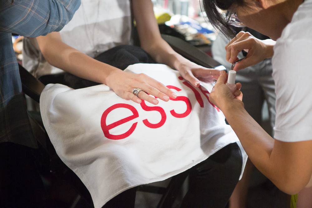 Tom’s take: “This was such a good backstage. Jin Soon was so friendly! I missed her interview, and then asked the PR girl to email it to me, and then Jin Soon was like 'No, no, no' and went through everything again for me. Basically the whole beauty story was 'undone downtown girl’—she talked about cleaning up all the dirt from the girl's nails, skipping the base coat, and keeping it sporty and light. The color was a nice milky sheer pink. The hair was inspired by Japan(I think?)—it was a cool look. Like at Thakoon, they tied the hair, literally, in a knot. The makeup was no-makeup makeup again—Gucci gave me a nice quote about it, hearing her describe it the way she did made it feel less redundant because it's literally what everyone is doing. I think the idea behind it is important and lovely (letting the skin breathe, seeing people's pores, etc). Winona Ryder was there! I didn't get anything from her, :(. I did get two pretty portraits of Allison Williams—no interview or quote at all though, which was one of my many NYFW rookie mistakes tonight, including getting Anna Wintour to pose for a portrait and then catching her blinking. There have been a lot of good moments to outweigh the bad though—it’s all right.”