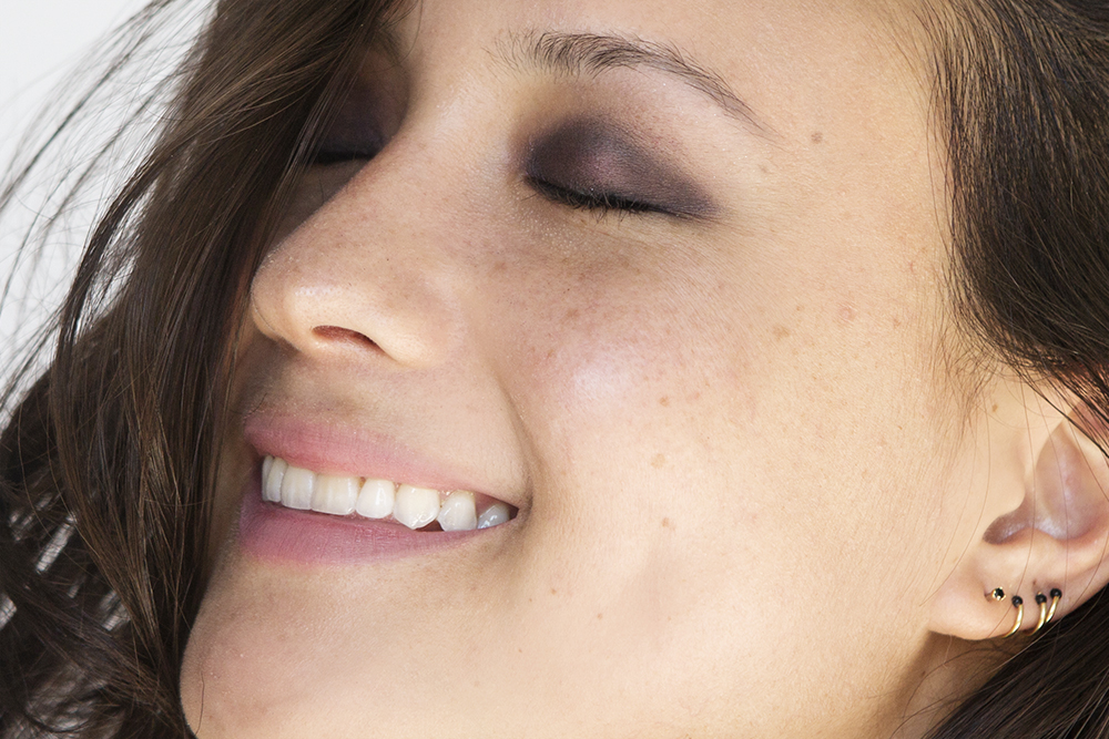 The fact that I was out of my comfort zone with the colors aside, the quality is there—the shadows seem to set into the skin instead of sitting on top of it. (The result of triple-milled powder, I think?) I use Glasswing (matte caramel) as a base, a mix of Hybrid Moments (deep purple) and Mezzanine (sparkly violet) for my sockets, Tornay (matte navy) as a liner, and Lucid (sparkly rose) on my brow bone. The final result inevitably yields heavily made-up lids like Kat Von D’s. A few hours later, the shadow migrated only a tiny bit below my bottom lash line—impressive compared to other dark shadows I regularly use. The color remains in place, not in my crease. Which is what you would hope from a woman who permanently inks people for a living, right?