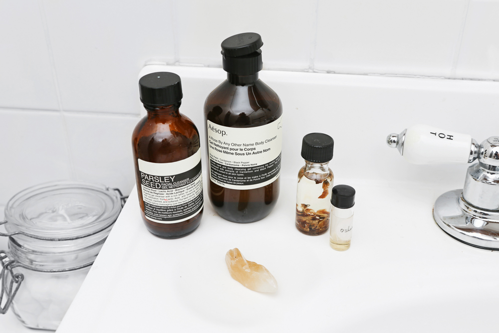 Everything else I use is sample-sized. There’s this great beauty supply shop called Larchmont Beauty Center and they give you all of these amazing samples whenever you stop by. So for all the products that I know I should use, but don’t really do like I should—like eye cream—I’ll just dig into a bag of samples and see what I come up with. Like, I've got this tiny amount of Mario Badescu that I'll use on my eyes. I used to go to his spa for the $65 facial, and I’d always stop and look at their Wall of Fame, from the ‘90s. There’re photos of Naomi Campbell and everyone. That’s how you know they’re good. I also used to go to Bliss—they have great facials. It’s kind of dated at this point, but they used to be the go-to place and you’d have this whole line of products from them. I still use a Clog Dissolving Cleansing Milk from them on my face.