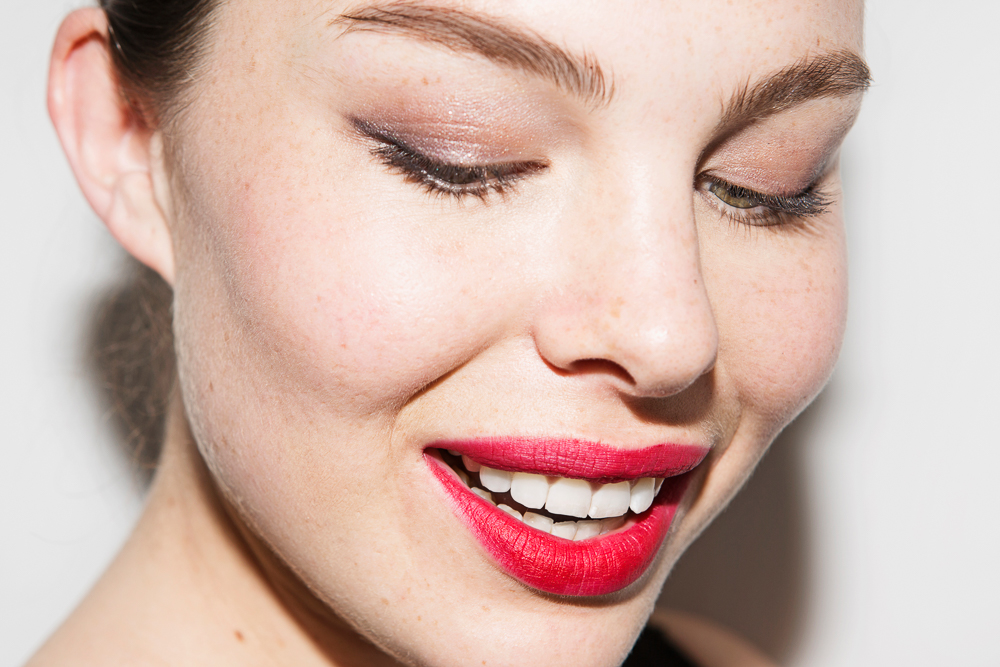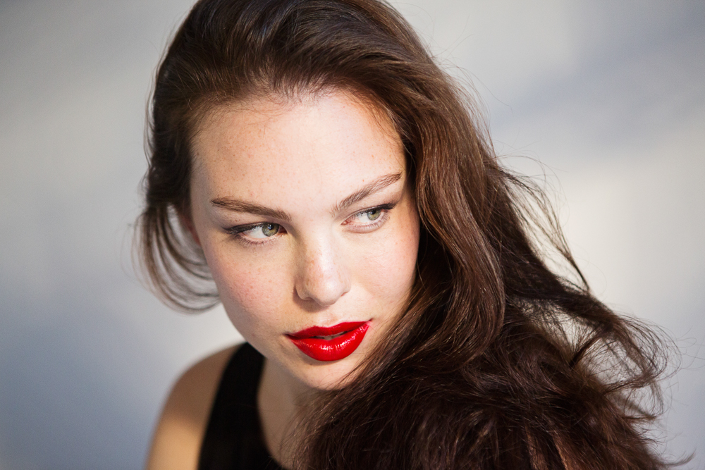Georgia Pratt (Muse) photographed by Tom Newton in Smashbox Always Sharp Lip Liner in Ruby , Be Legendary Lip Lacquer in Firecracker, Photo Op Eye Shadow Trios in Vignette, Hyperfocal, and Shutterspeed, and Limitless 15 Hour Wear Cream Shadow in Quartz. Makeup by Allie Smith.