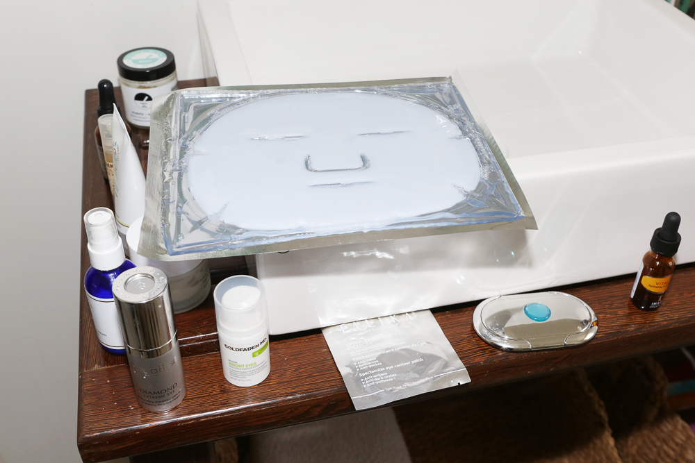 I’m obsessed with eye creams. Obsessed. For a while, I used the Natura Bisse Diamond Extreme Eye Cream, but recently I switched over to Goldfaden MD Bright Eyes Dark Circle Radiance Concentrate because it’s better for my dark circles, like the name says. I use it day and night. The Talika Eye Therapy Patches are amazing and you can use them more than once. I put them on at night if I’m feeling a little tired or whatever. Vital C Hydrating ACE Serum from Image Skincare is supposed to be good—I don’t know what it does exactly, but it has Vitamin C which I really like for wrinkles. I don’t have any major lines, so I focus on plumping and hydrating—that’s the key for beauty. I’ll go to the Japanese grocery store and pick out any sheet masks that promise moisture. I like the Wei East Face Masks, and I’ll get a pack of 35 masks for 15 bucks. I have no idea what’s inside them, but I enjoy them anyway. My facialist, Vanessa Hernandez, is making a collagen mask and a hyaluronic acid one—those are going to be dope.