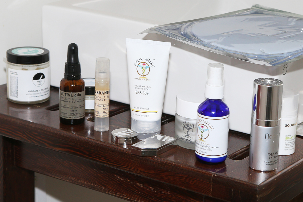 I always had pretty good skin until this period in my late 30s where it got really angry. I think it was a hormone change or something—I just kept getting these really awful bumps, one after another. Finally I saw an Ayurvedic doctor who told me 'You need to cut out this, this, and this,' sort of like a cleanse. The whole process was really tailored—she looks at your eyes and your tongue and she said I had too much fire in my system. I had to cut out all spicy foods. I’m still pretty much on that diet, but I’m not as strict as I should be—I’ll have dairy and drink coffee. But cutting things out cleared my skin up a lot. And the Ayur-Medic line of products is really great. If I have makeup on, I’ll use Ayur-Medic Vacha Cleanser. I scrub with the Anti-Bacterial Wash with Exfoliating Beads once or twice a week. I use 24 Hour Moisturizing Serum and the Clarifying Cream over it.