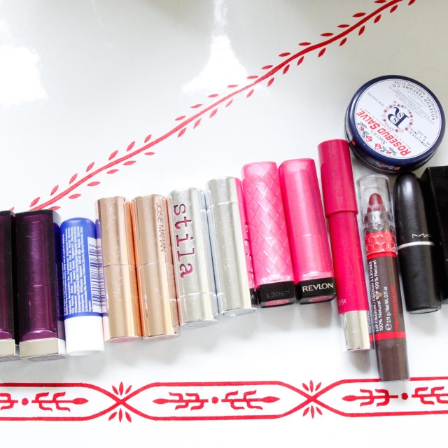 I have lots of different foundations and change them based on the seasons. Bare Minerals bareSkin Pure Brightening Serum Foundation in Beige applied with a big powder blush for light coverage works well for me at the moment. Then I use RMS Living Luminizer for highlighting and Laura Mercier Secret Camouflage in SC4 under my eyes in the morning. When I go out, I'll use Lancome L'Extreme Lengthening Mascara, and MAC Lady Danger or MAKE Silk Cream Lipstick in Scarlett for a blue-ish red lip. Josie Maran Hydrating Lipstick in Playful Pink is also a favorite right now.